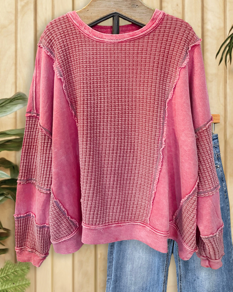Casual patchwork sweatshirt with seamed details and relaxed round neck, perfect for everyday wear.