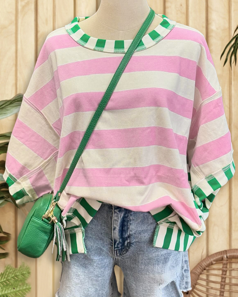 Mint Boutique Striped Patchwork Cozy Round Neck Blouse