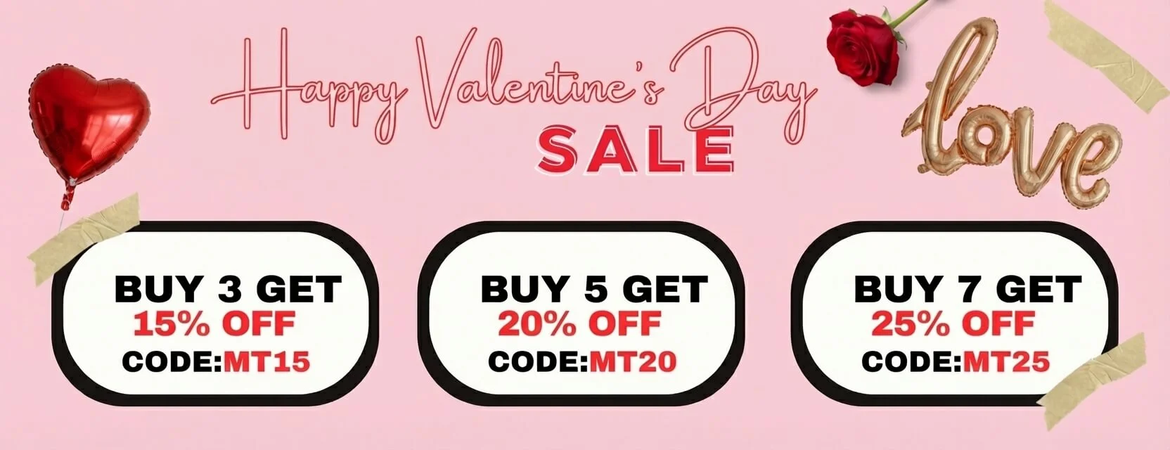 Valentine's Day Sale Buy 3 Get 15% OFF CODE: MT15 Buy 5 Get 20% OFF CODE: MT20 Buy 7 Get 25% OFF CODE: MT25