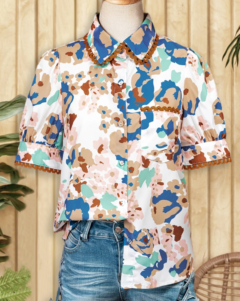 Mint Boutique Abstract Print Circle Trim Button Down Unusual Shirt