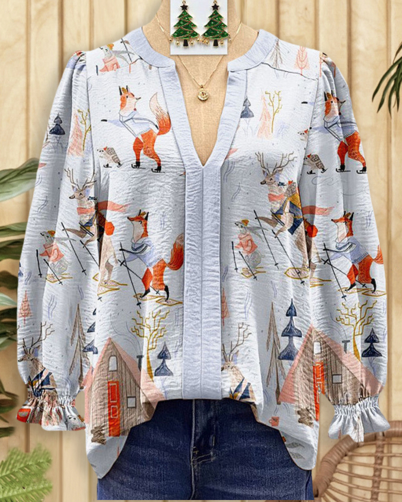 Feminine V-neck blouse with animal print, perfect for stylish casual looks.