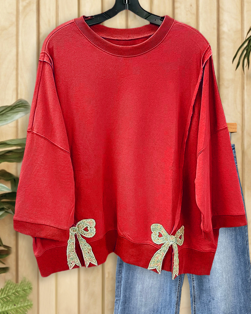 Mint Boutique Bow Applique Decor Playful Round Neck Sweatshirt