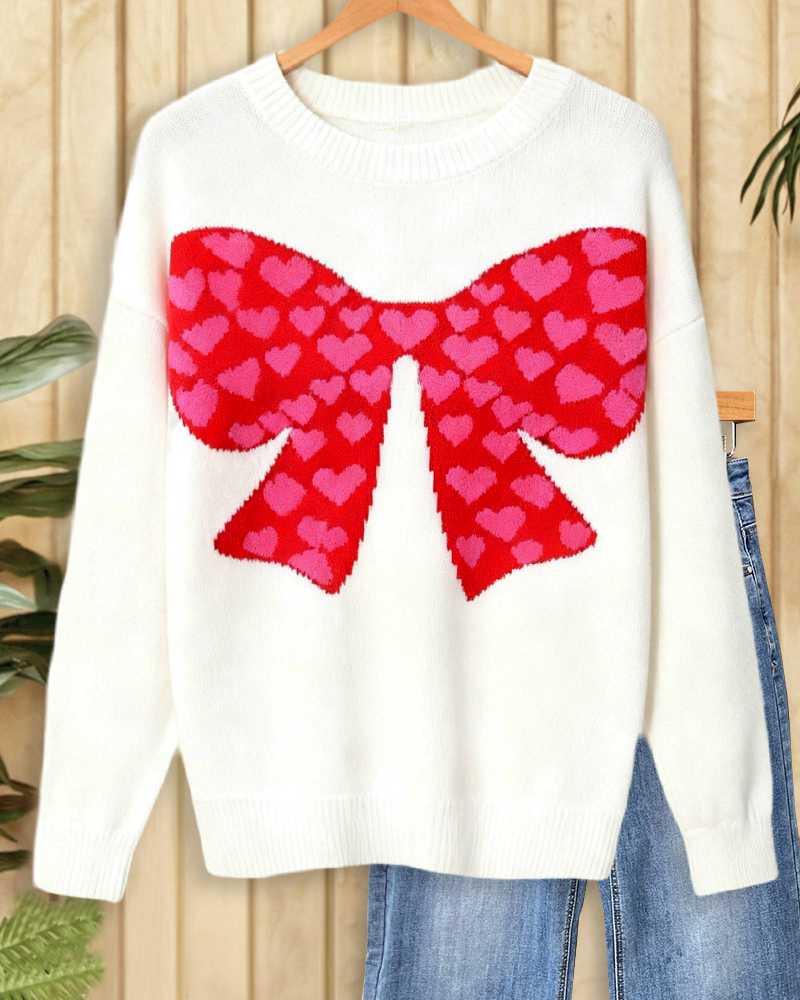 Mint Boutique Bowknot Girly Round Neck Drop-Shoulder Sweater