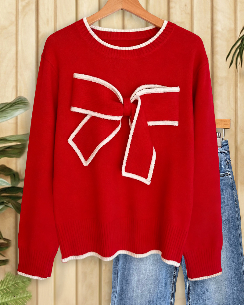 Sweet round-neck sweater with bowknot detail, perfect for casual outings, dates, and cozy everyday wear.