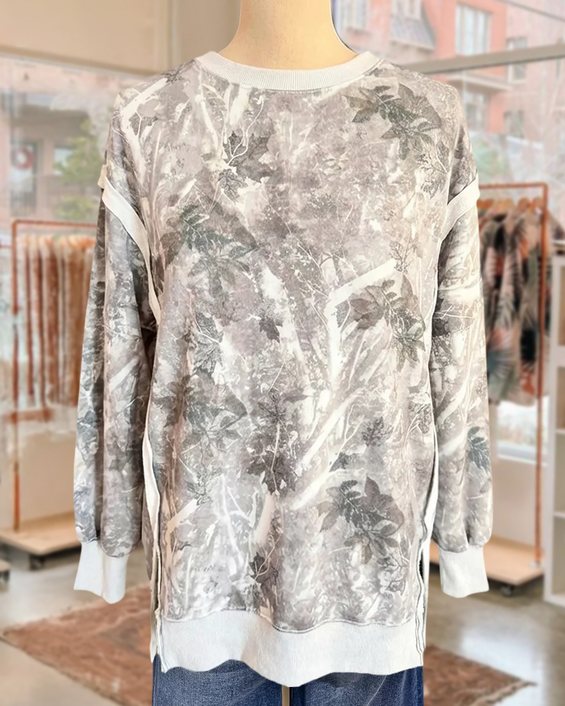 Mint Boutique Camouflage Relaxed Round Neck Side Slit Sweatshirt