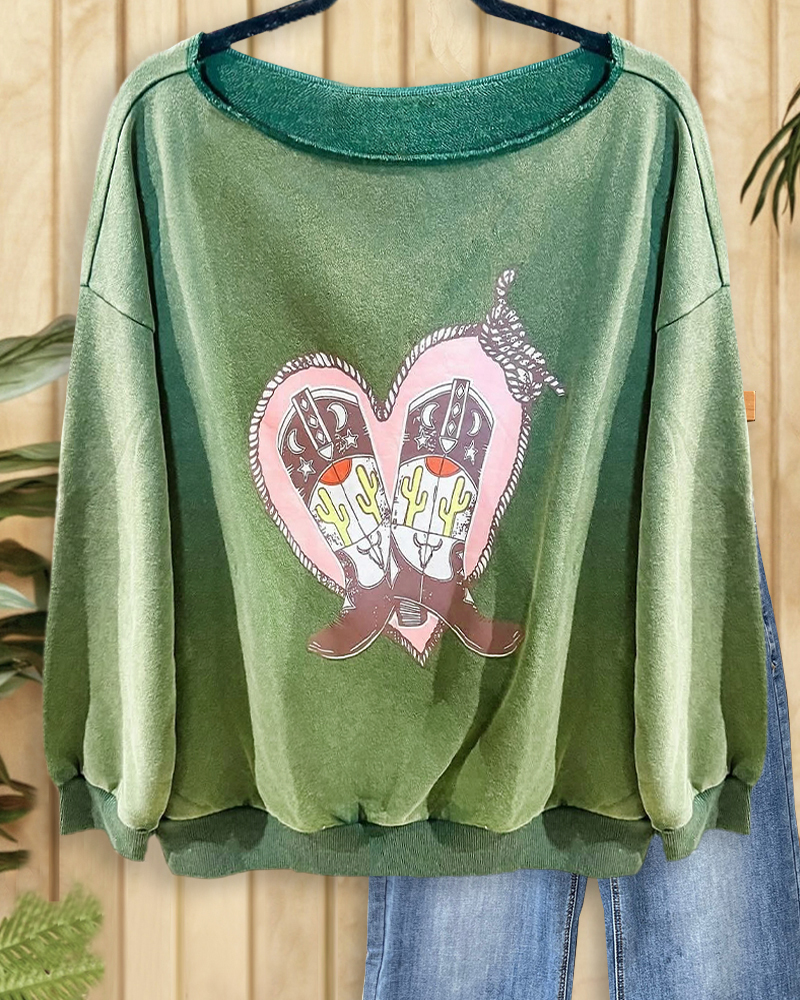 Mint Boutique Cartoon Print Retro Slash Neck Drop-Shoulder Sweatshirt