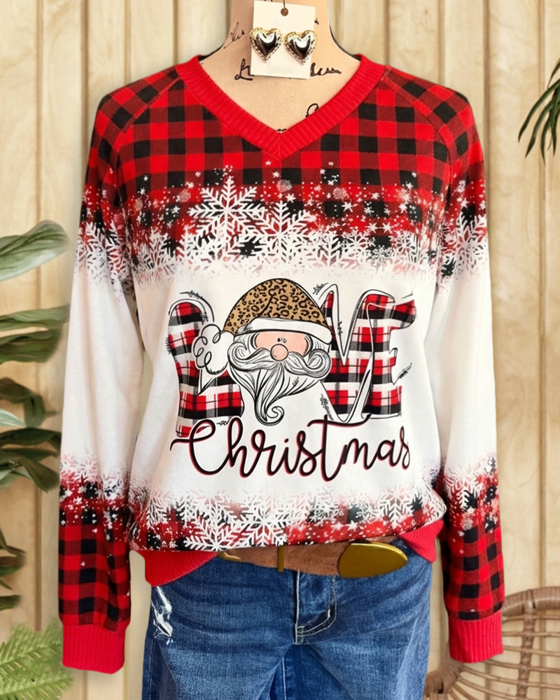 Girly V-neck shirt with Christmas checked print, perfect for festive and casual holiday wear.