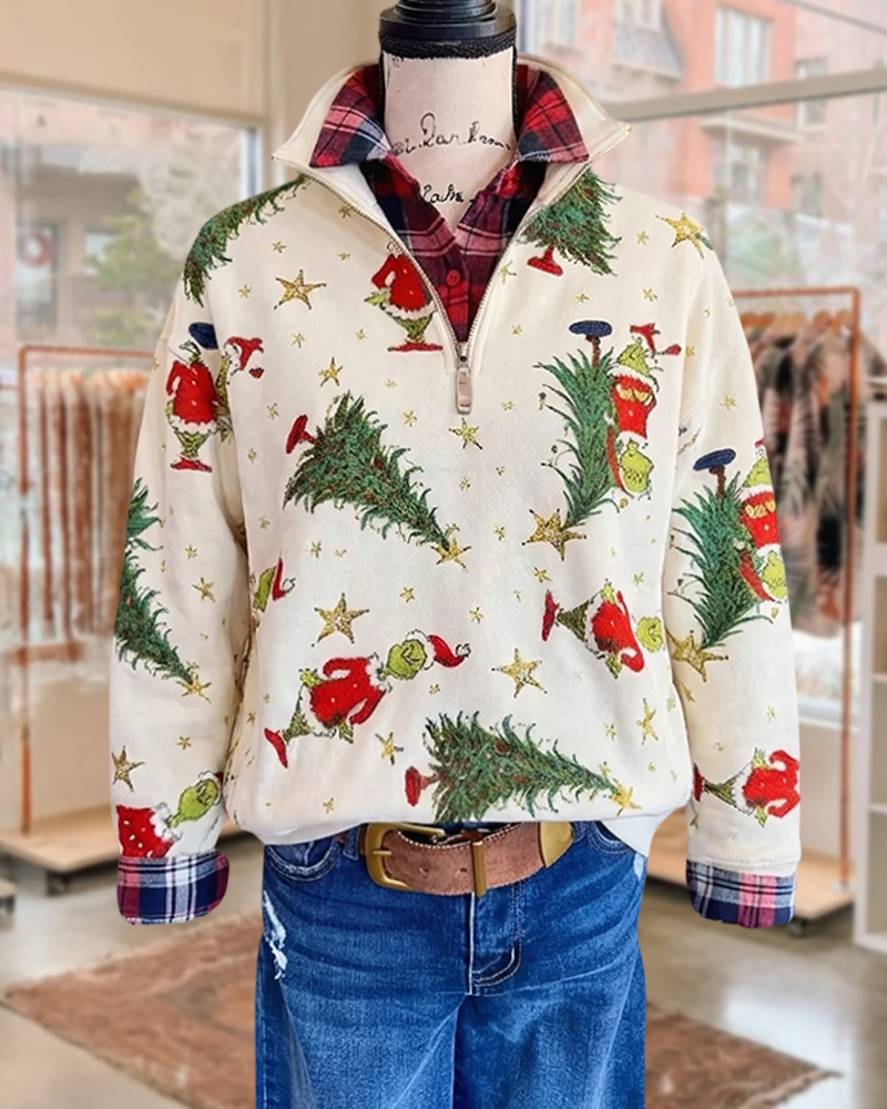 Christmas print sweatshirt with zipper, perfect for festive casual wear.