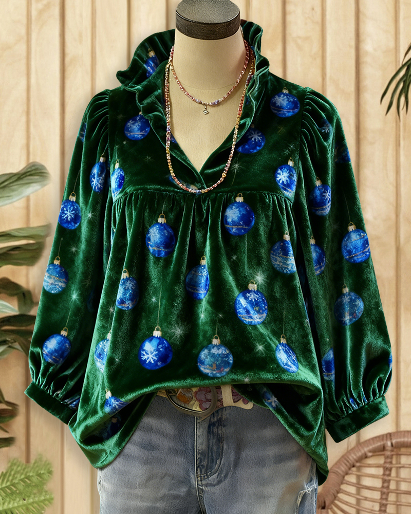 On-trend Christmas velvet V-neck blouse, perfect for festive parties and stylish holiday gatherings.