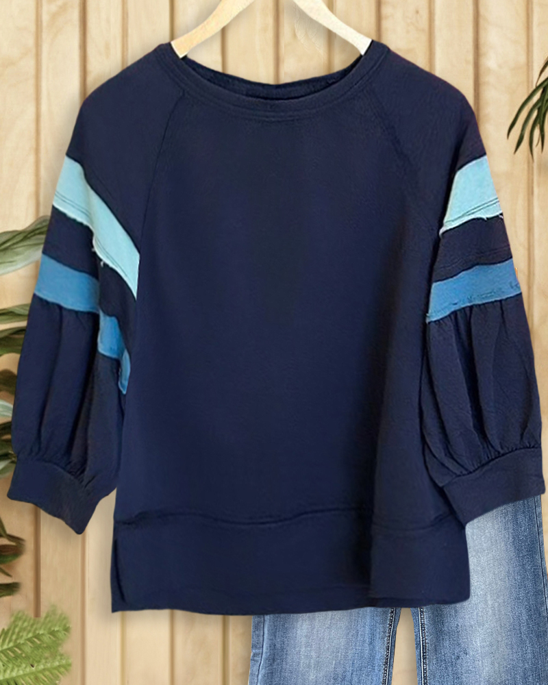 Sporty color-block round-neck sweatshirt, perfect for casual outings or active days.