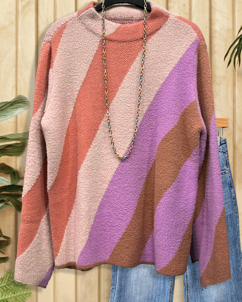 Mint Boutique Color Block Stylish Round Neck Sweater