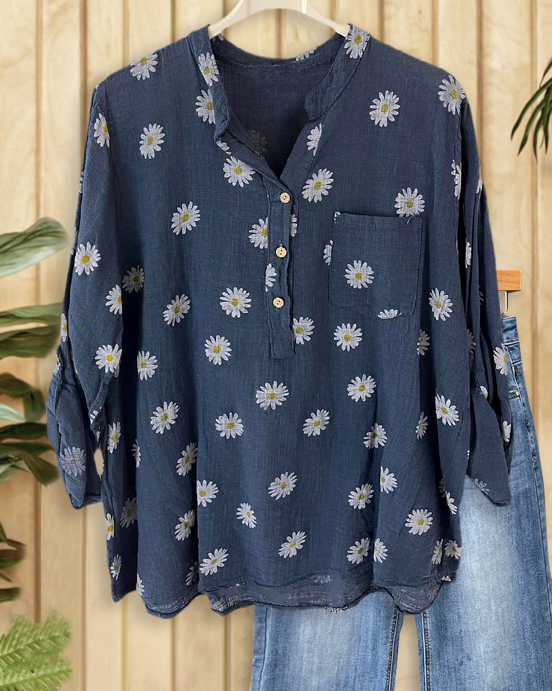 Daisy print V neck blouse, perfect for cheerful and casual everyday wear.