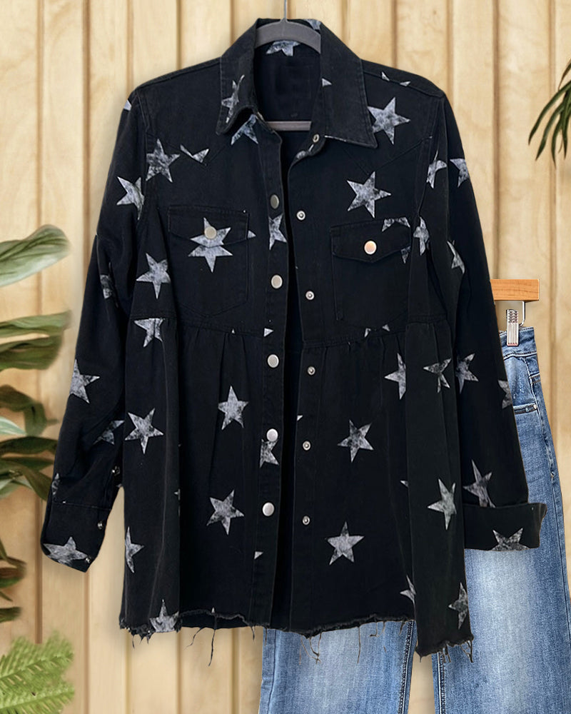 Mint Boutique Distressed Star Print Girly Denim Jacket
