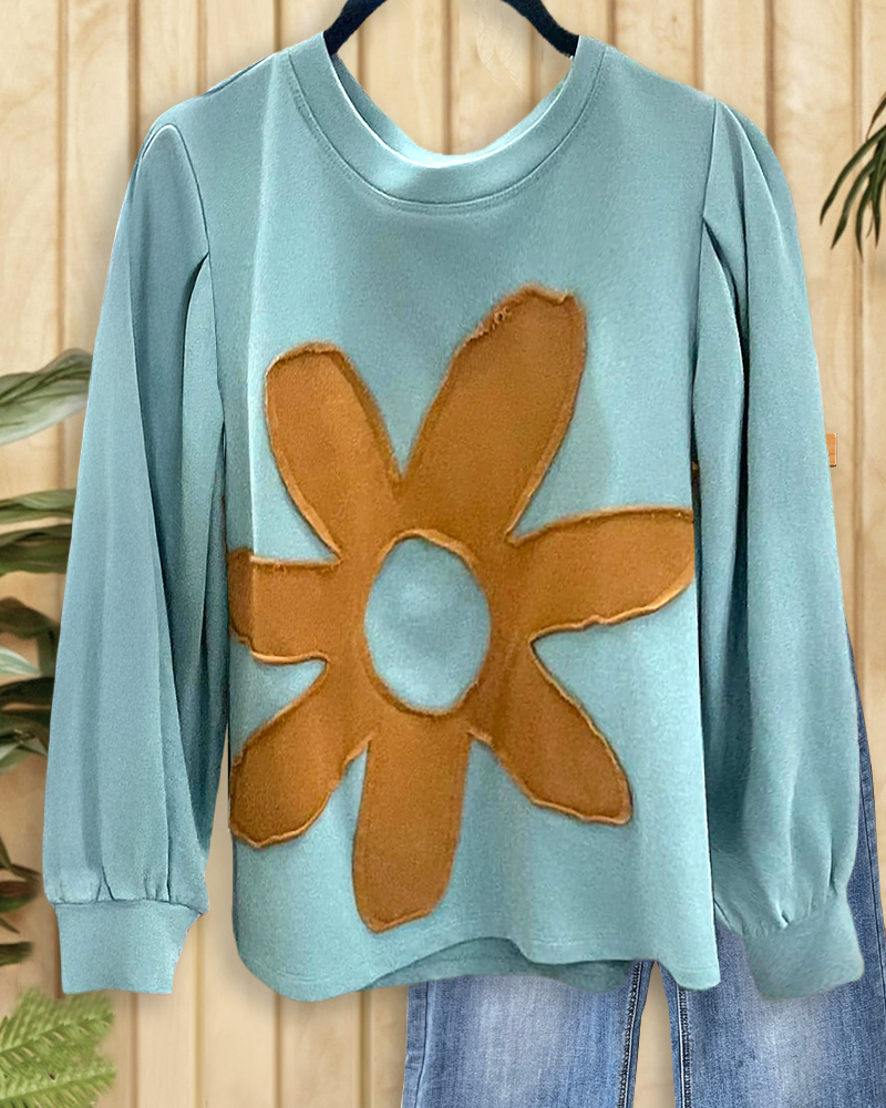 Smart hit-color sweatshirt with floral applique and round neck, perfect for casual wear.