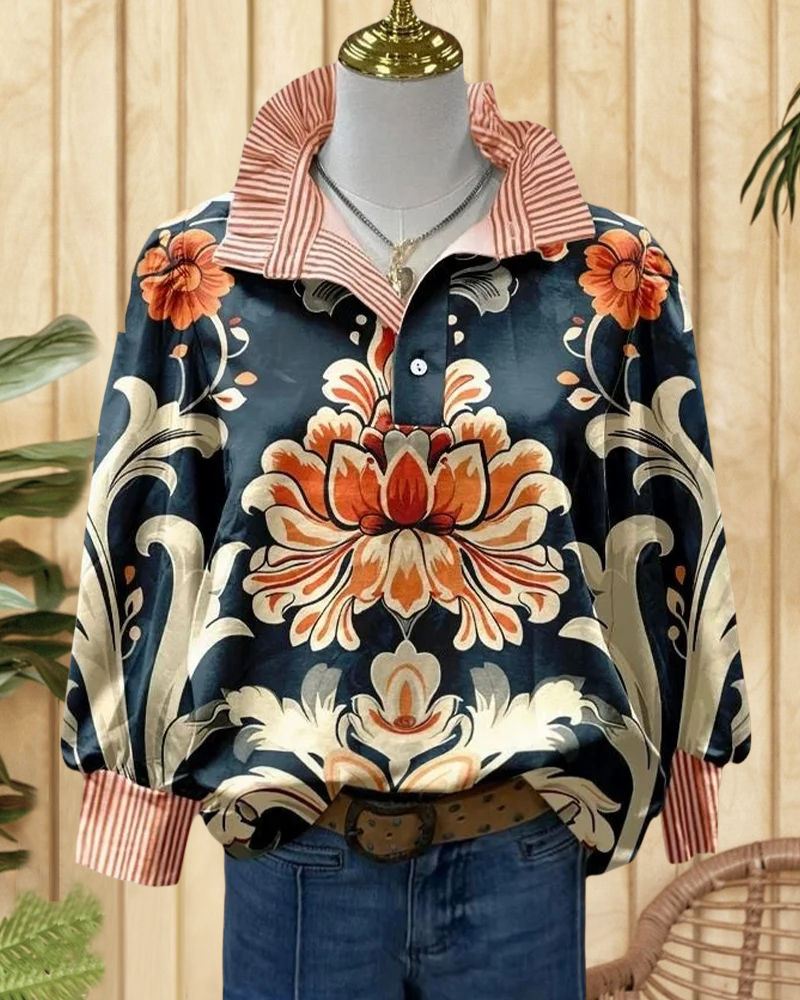 Mint Boutique Floral Print Elegant Ruffled Collar Blouse