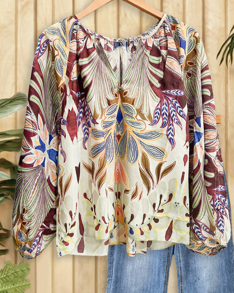 Mint Boutique Floral Print Pastoral Lantern Sleeve Blouse