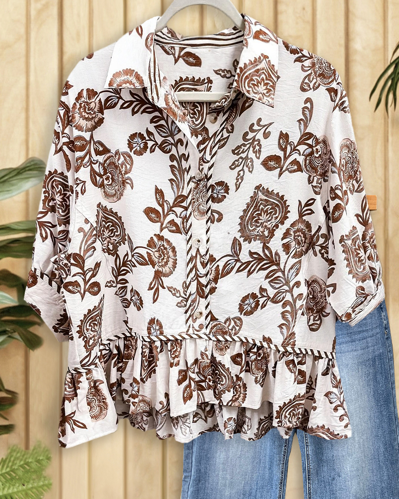 Mint Boutique Floral Print Playful Ruffled Button Up Blouse