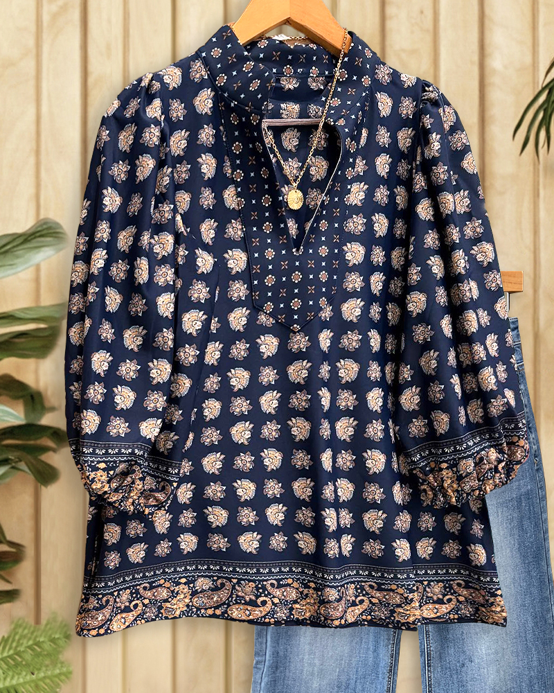 Relaxed floral blouse with puff sleeves, perfect for casual or everyday wear.