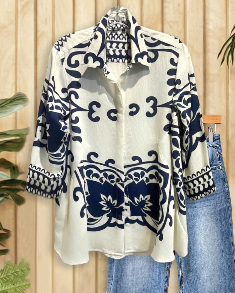 Retro button-down shirt with floral print, perfect for vintage-inspired outfits.