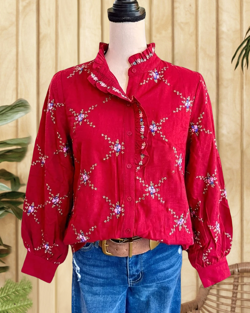 Mint Boutique Floral Print Rocking Ruffles Trim Button Up Blouse