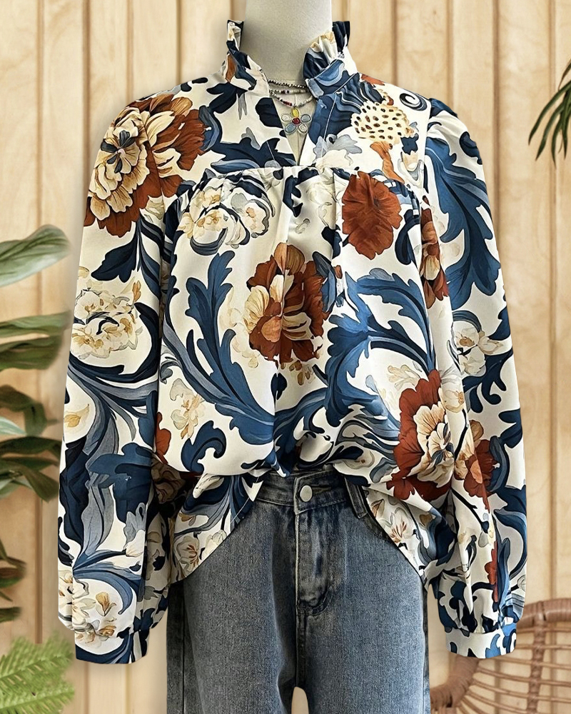Glamorous V neck blouse with floral print, perfect for parties or chic casual wear.