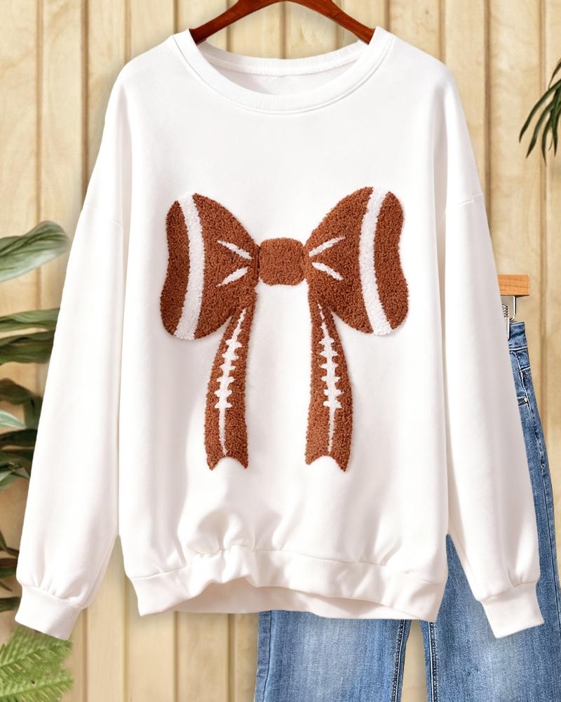Sporty football bow sweatshirt with drop shoulders, perfect for game days.