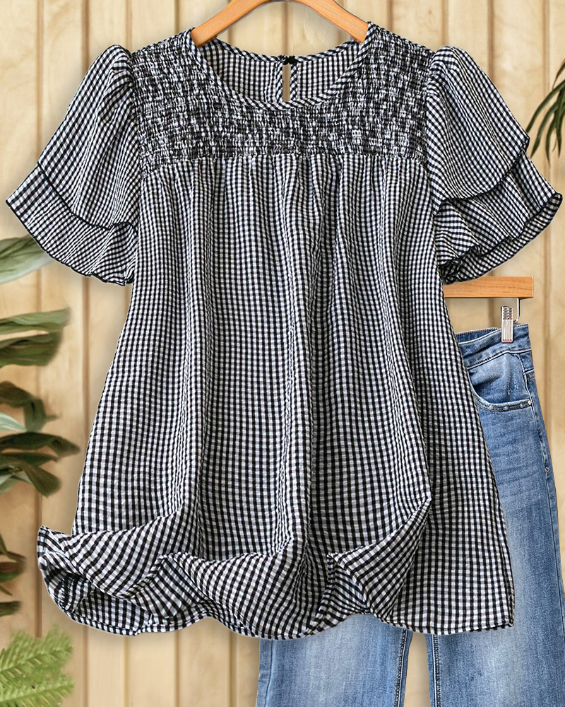 Mint Boutique Grid Smocked Pretty Tiered Sleeve Blouse