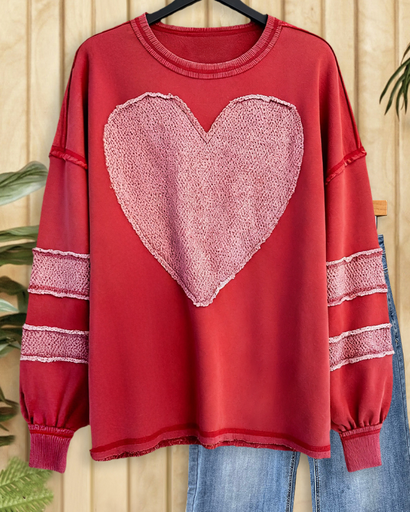 Mint Boutique Heart Applique Smart Round Neck Drop-Shoulder Sweatshirt