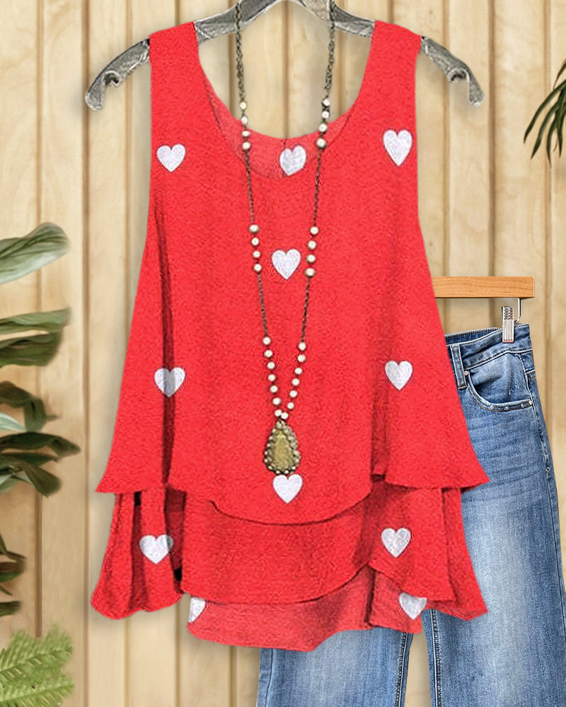 Cute and cozy, this heart print tiered camisole is perfect for casual days and sweet outings.