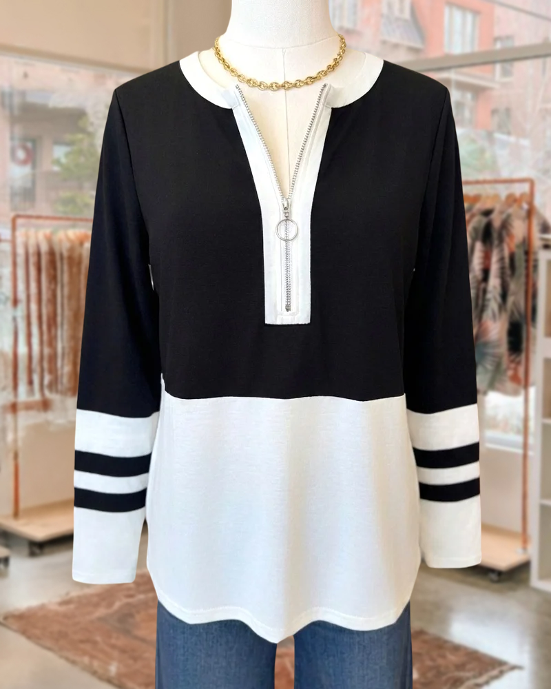 Mint Boutique Hit Color Simple Round Neck Zipped Design Shirt