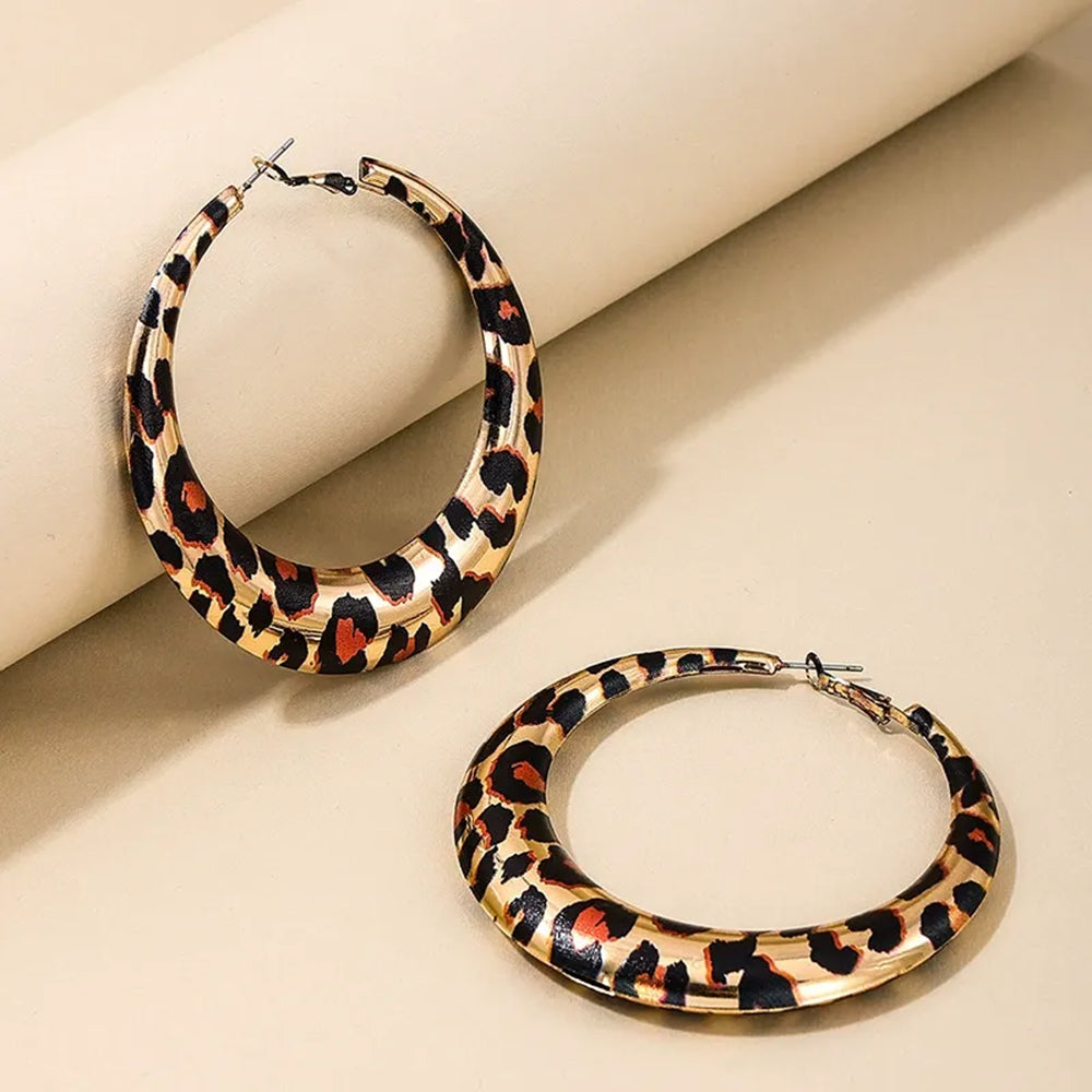 Bold leopard-print hoop earrings with a glossy finish, delivering fierce style and confident flair for standout everyday or party looks.