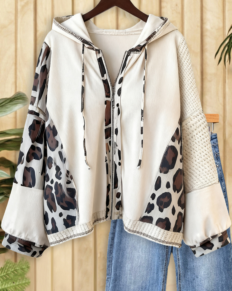 Mint Boutique Leopard Print Patchwork Bold Zipper Hooded Top