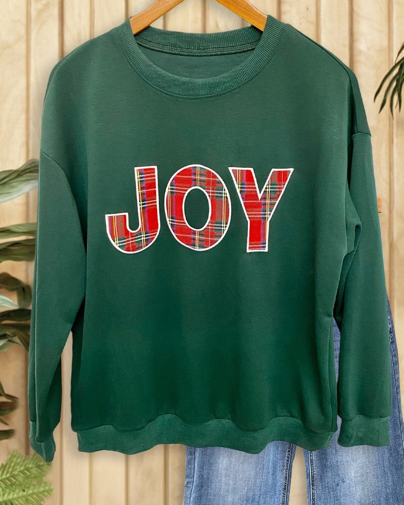 Mint Boutique Letter Applique Round Neck Urban Drop-Shoulder Sweatshirt