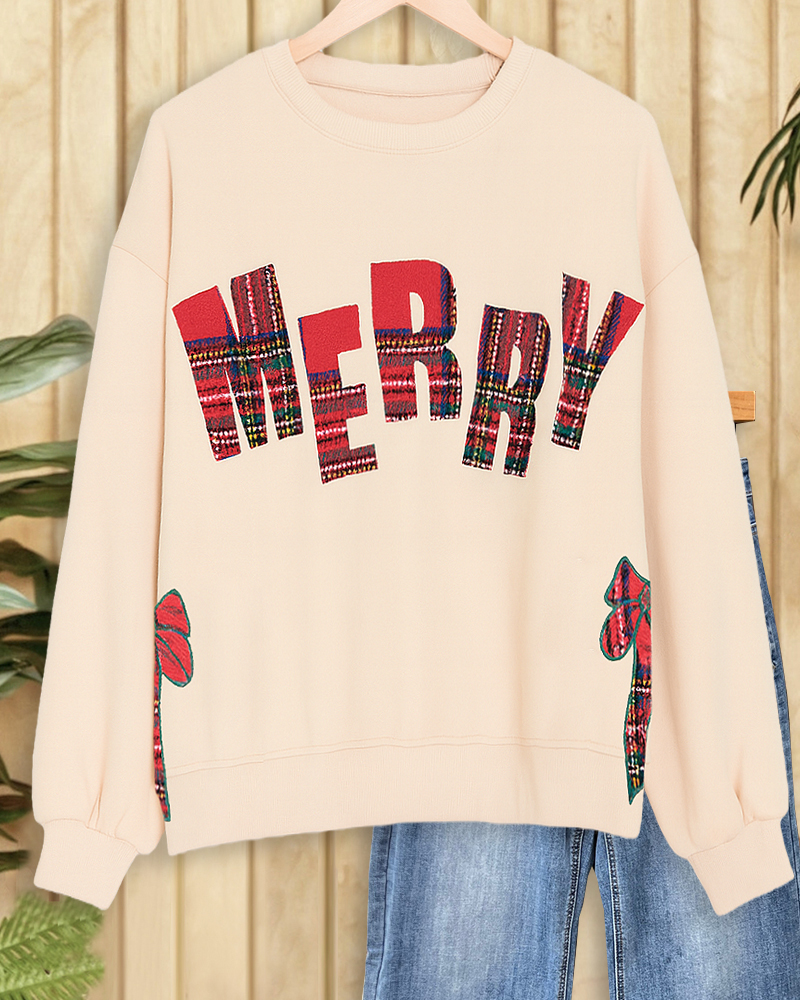 Mint Boutique Letter & Bow Applique Sweet Side Slit Sweatshirt