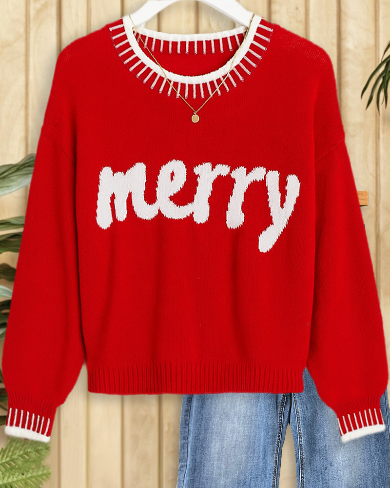 Mint Boutique Letter Hit Color Smart Drop-Shoulder Sweater