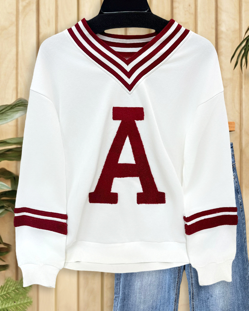 Letter print V-neck sporty sweatshirt in hit colors, great for active days and casual wear.