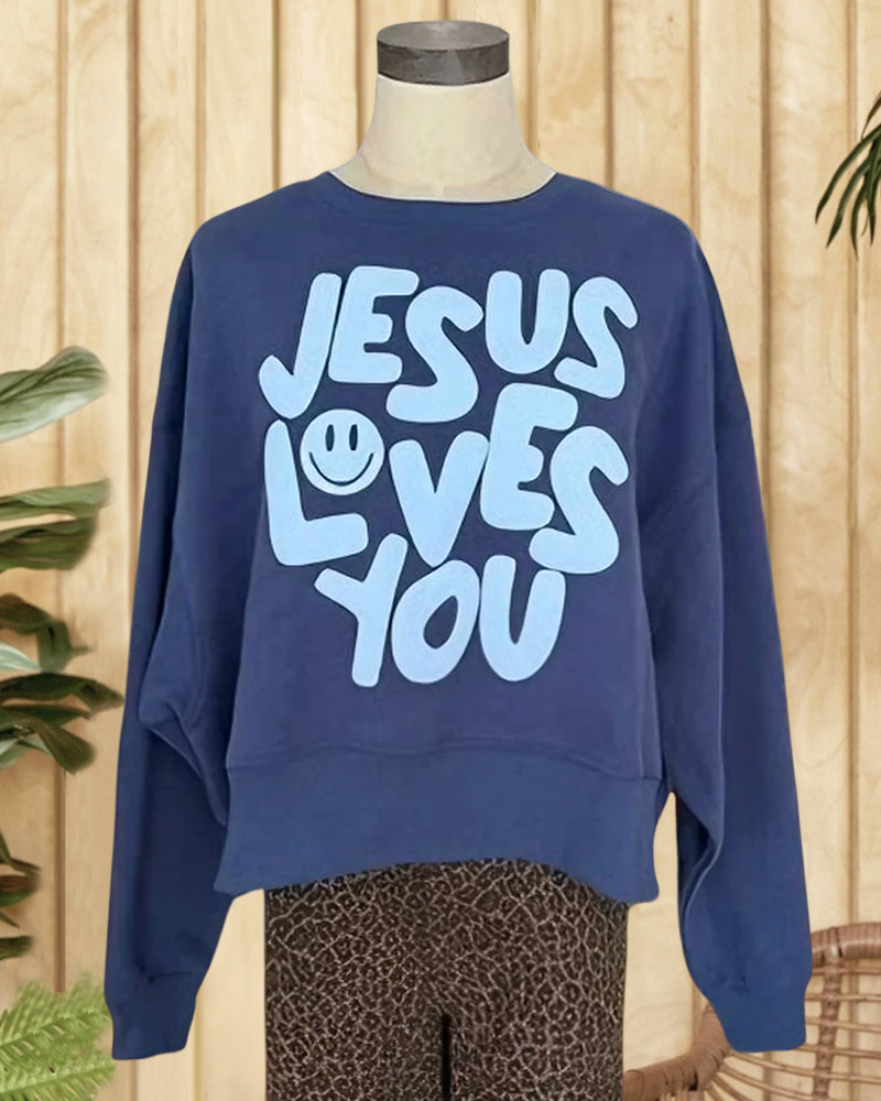 Cozy round-neck sweatshirt with letter print and drop shoulders, perfect for casual everyday wear.