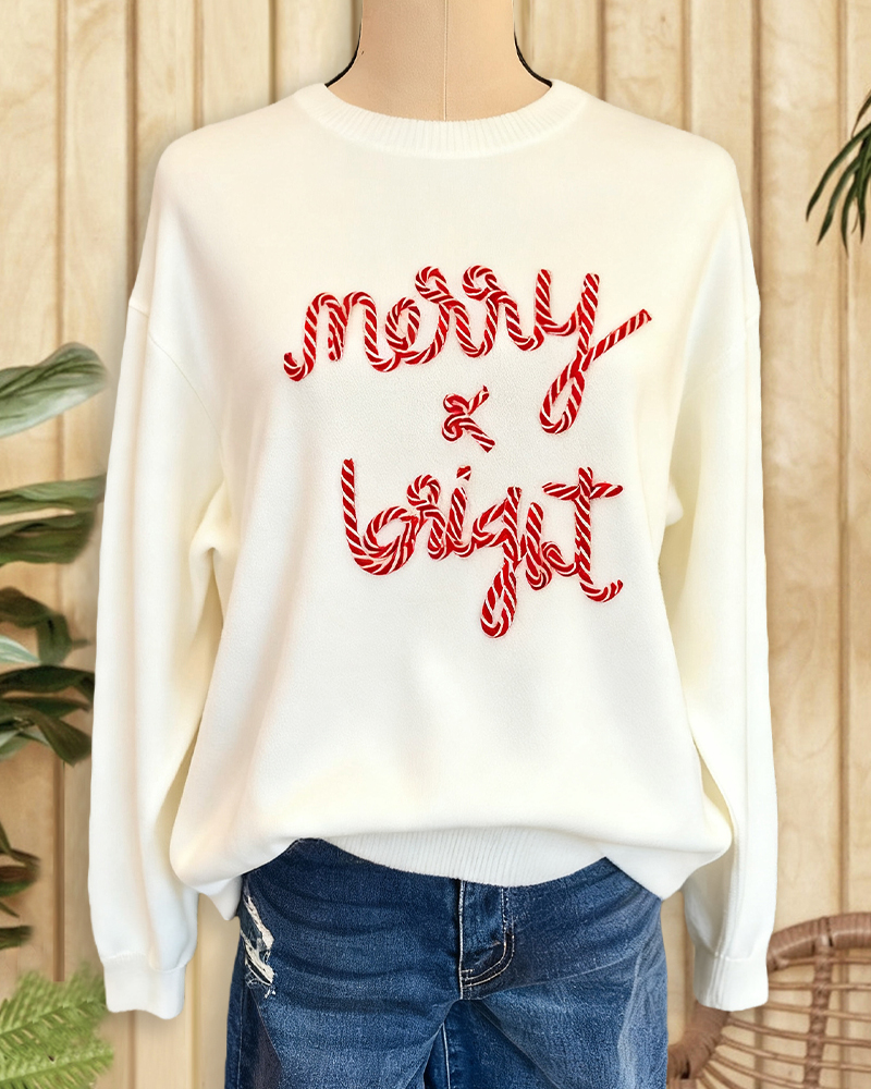 Mint Boutique Letter Print Versatile Round Neck Drop-Shoulder Sweater