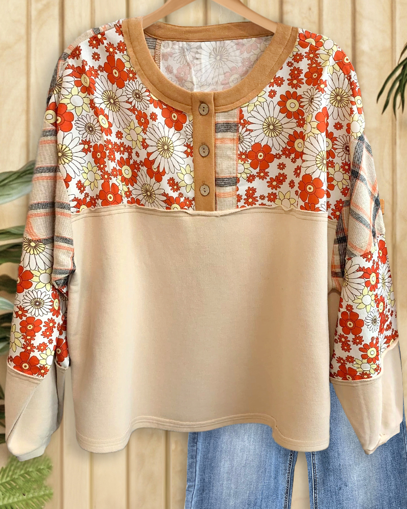 Mint Boutique Mixed Patchwork Casual Round Neck Sweatshirt