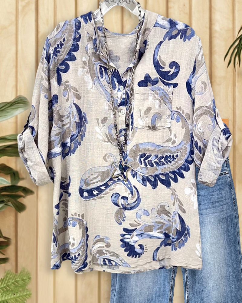 Mint Boutique Paisley Print Bohemia V Neck Button Front Blouse