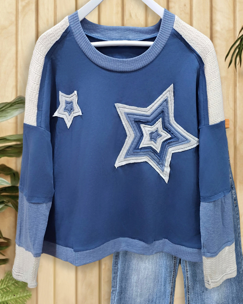 Mint Boutique Patchwork Star Applique On-trend Round Neck Blouse