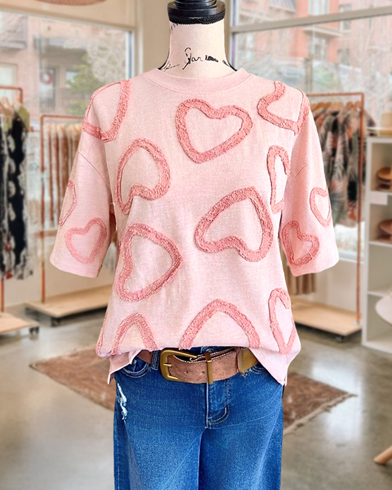 Mint Boutique Pink Heart Applique Sweet Drop-Shoulder T-Shirt