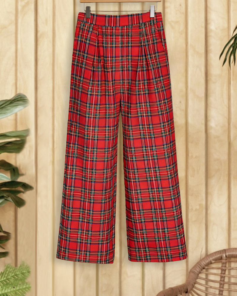 Plaid straight-leg pants for relaxed stylish everyday wear.