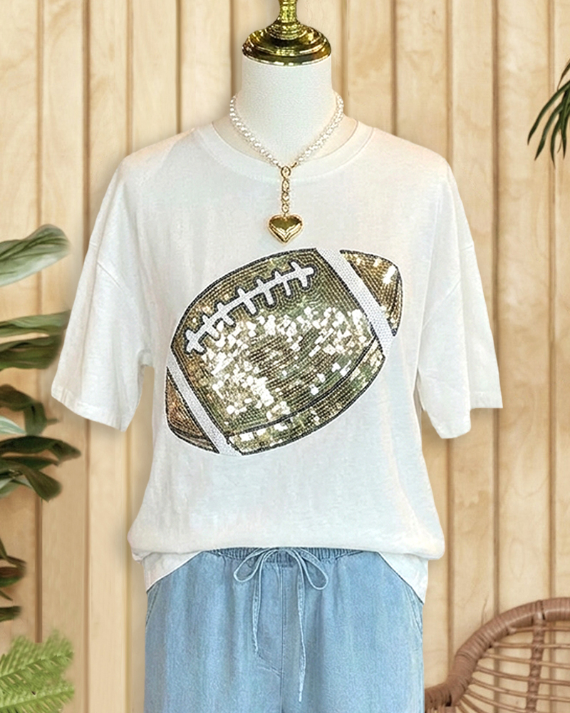 Sporty sequined American football shirt with round neck, perfect for game days, casual outings, or fan events.