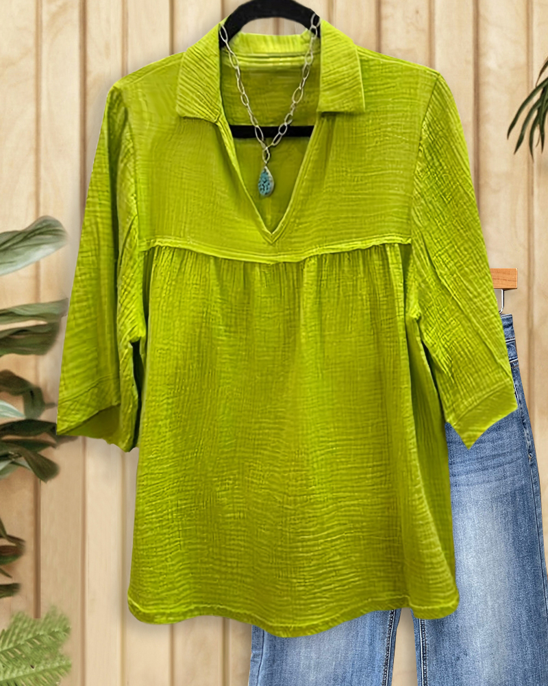 Mint Boutique Solid Color Casual V Neck Babydoll Blouse