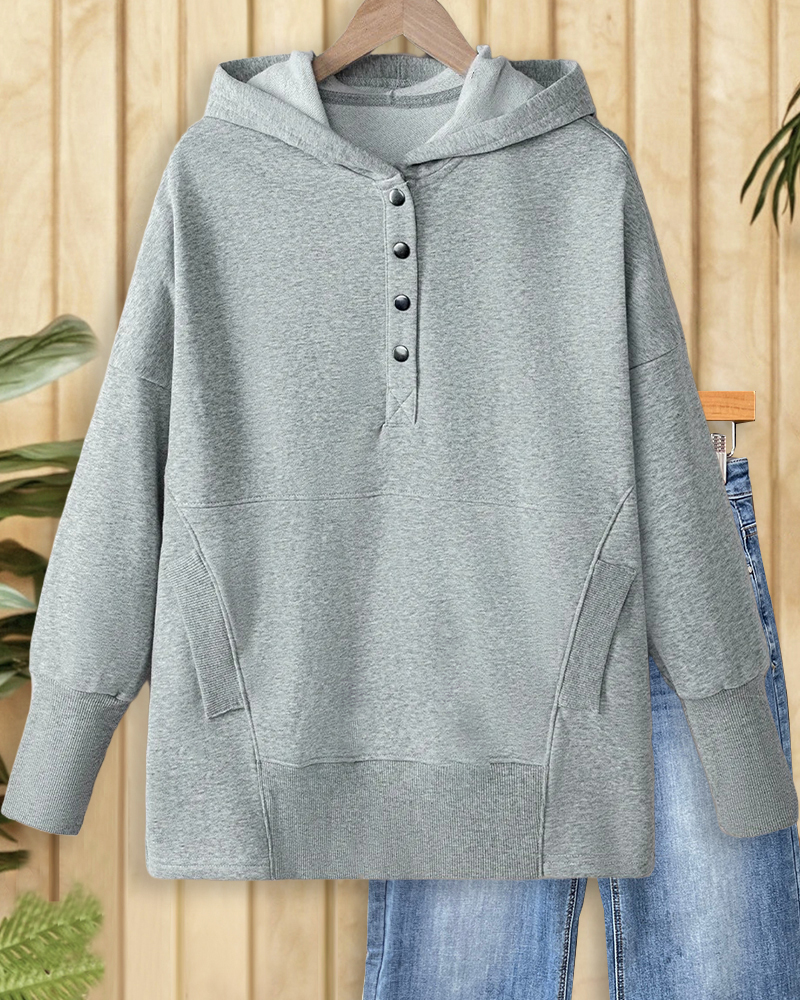 Mint Boutique Solid Color Classic Pocket Drop-Shoulder Hooded Top