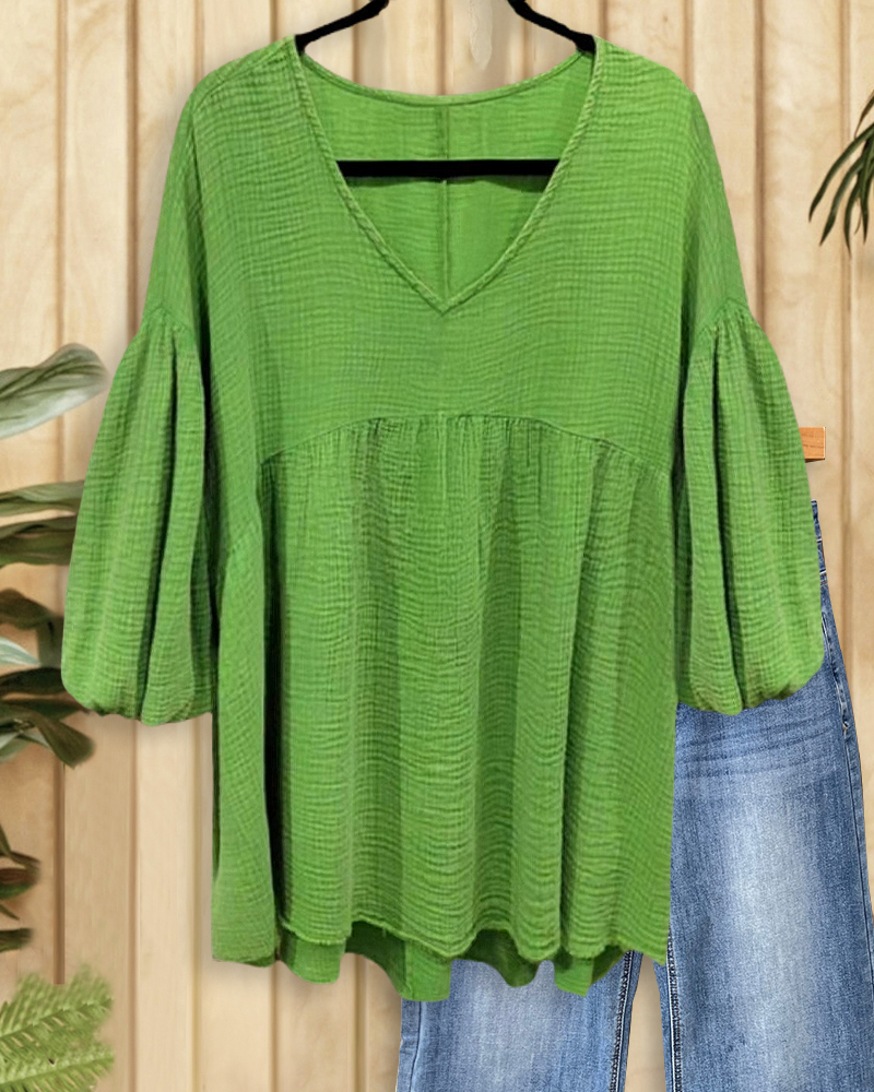 Urban-style solid blouse with puff sleeves and babydoll silhouette, perfect for trendy everyday wear.