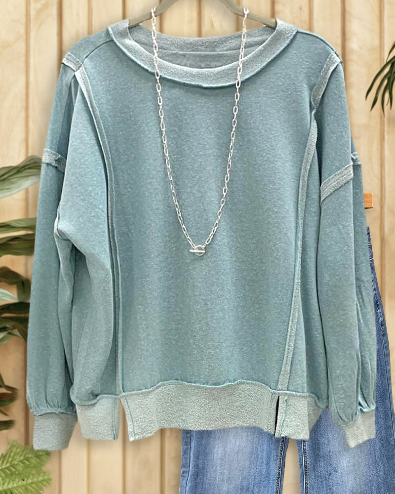 Mint Boutique Solid Color Seamed Detail Classic Round Neck Sweatshirt
