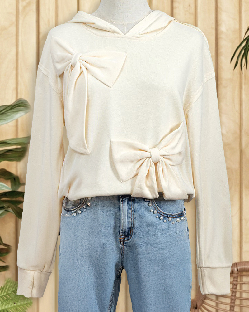 Sweet solid color hooded top with bow decor, perfect for cute and casual everyday style.