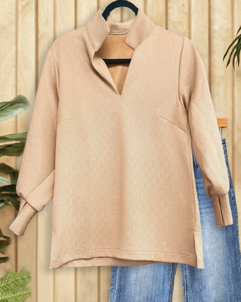 Mint Boutique Solid Color Textured V Neck Versatile Sweatshirt